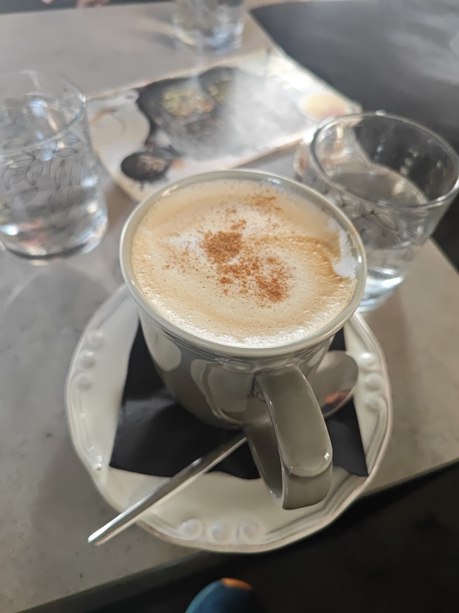 This is a place that feels both private and open — ideal for those seeking refuge with a book, their laptop, or simply a moment to gaze beyond the everyday. The few tables are spaced to foster a peaceful experience, where conversations hum softly beneath the occasional clink of ceramic cups. The atmosphere carries a subtle energy, not from noise or busy crowds, but from the shared stillness of visitors immersed in study, creativity, or reflection.